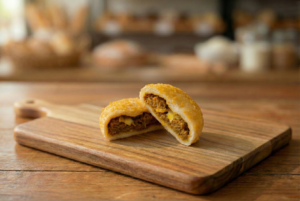 中辛のカレーととろけるチーズソースを包んだ揚げてないヘルシーなカレーパン