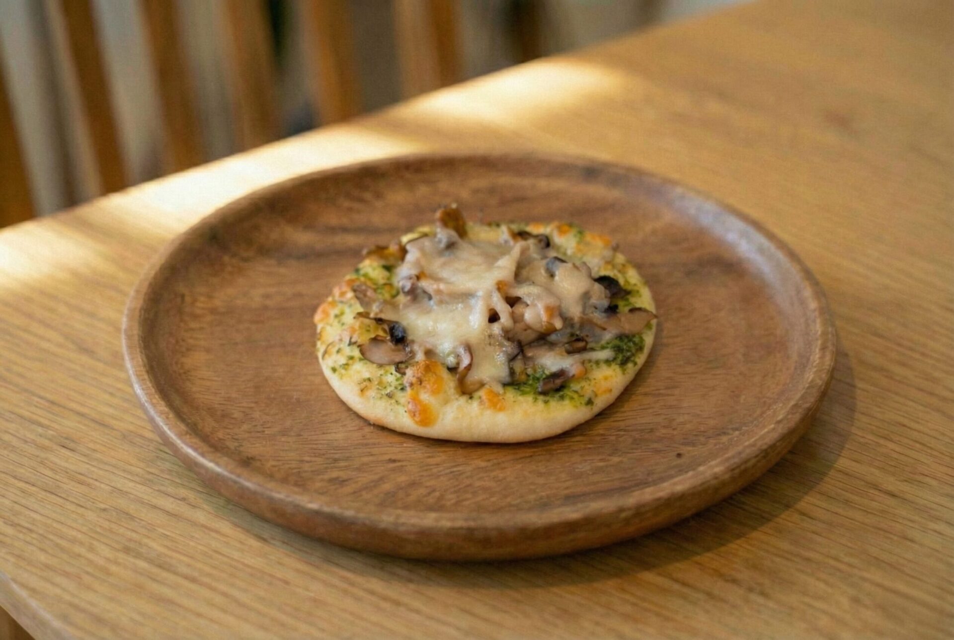 ローストチキンとたっぷりきのこのジェノベーゼピザパン