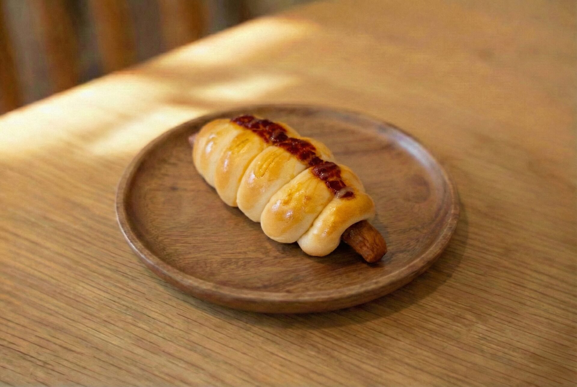 ジューシーな程よい食感のソーセージに生地を巻きました