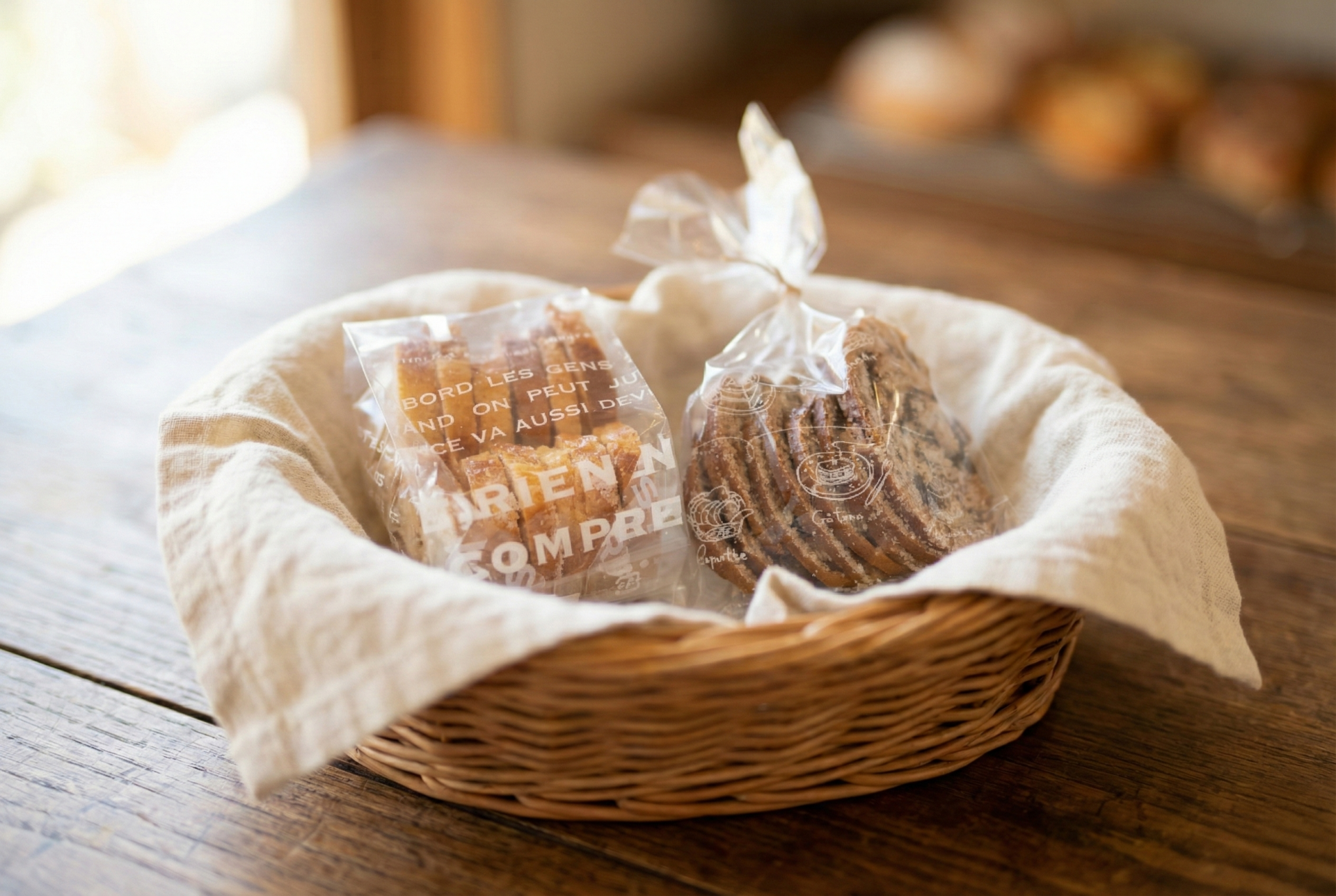 フランスパン、カンパーニュをカリカリに焼き上げたラスクです。季節に応じて数種類のご用意があります。